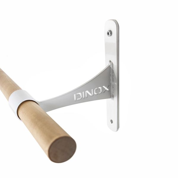 Metallinen Dinox Balettitangon seinäkannatin on suunniteltu erityisesti 41 mm halkaisijan puiselle balettitangolle. Kannatin toimii toki myös esim. 40 mm tangon kanssa. Balettitangon putkiosa on 8 cm leveä, joten se tukee erinomaisesti balettitankoa. Myös tankojen jatkojen kohdalla jatkoskohdan saa erinomaisesti piiloon putkiosan sisään ja samalla myös liitoskohta on äärimmäisen tukeva. Kannakkeen vakioväri on tyylikäs valkoinen, joka soveltuu suurimpaan osaan tiloista ja esimerkiksi Dinoxin lakatun koivubalettitangon kanssa väriyhdistelmä on eleganssi. Halutessasi voit toki pyytää tarjouksen haluamastasi kannakkeen väristä myynnistämme.