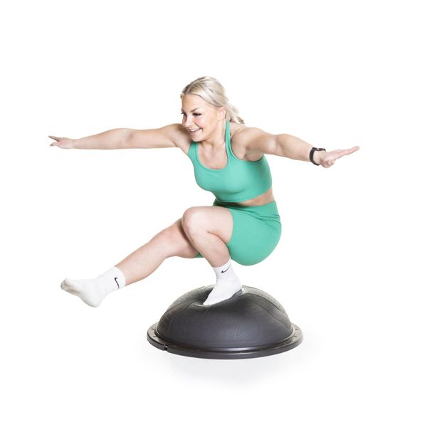 Kehitä keskivartalon motoriikkaa sekä monipuolista harjoittelua entisestään tekemällä liikkeet puolipallon päällä ja vie harjoitukset vielä astetta haastavammaksi, koska korkeutta puolipallolla on 22 cm ja mukana kahvalliset kuminauhat. Puolipallo on todella kestävä ja se soveltuu aktiiviseen kuntosalikäyttöön, sekä kotikäyttöön.