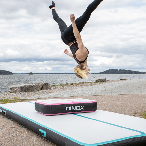 Airblock, eli ilmatäytteinen alusta on mahtava lisä temppuiluun, cheerleadingiin, voimisteluun, tumblingiin jne. Joustavasta blokista saat hyvin ponnahdusvoimaa, jolloin hyppysi yltää korkeammalle esimerkiksi voltteja tehdessäsi. Toimii erinomaisesti hyppy- ja laskeutumisalustaksi. Sopii myös vesileikkeihin ja mikäettei lumiseen pulkkamäkeenkin! Pienen kokonsa puoesta helppo kuljetta.