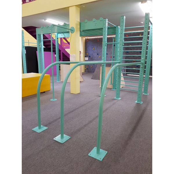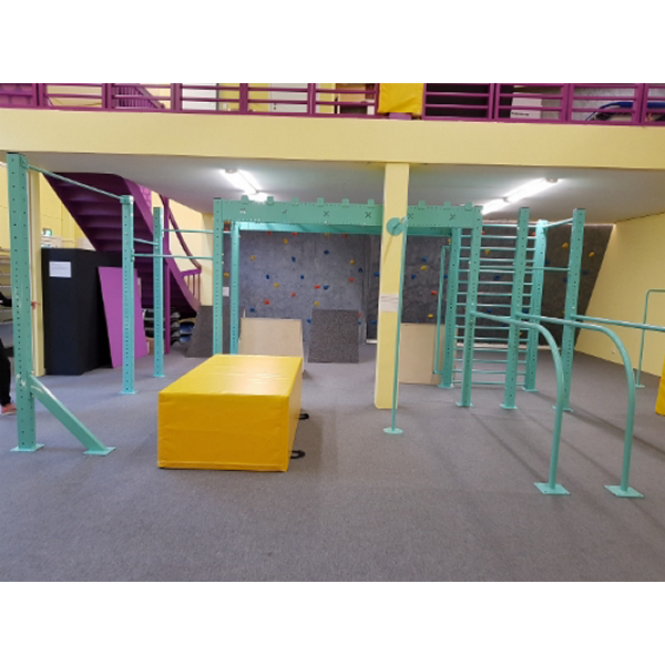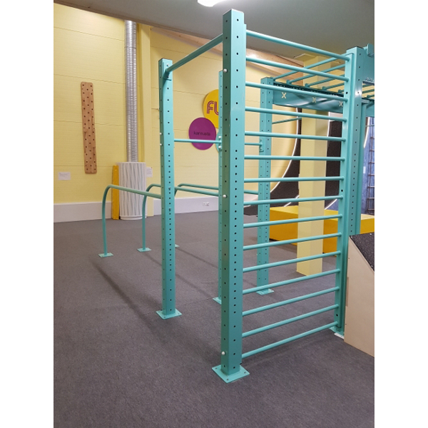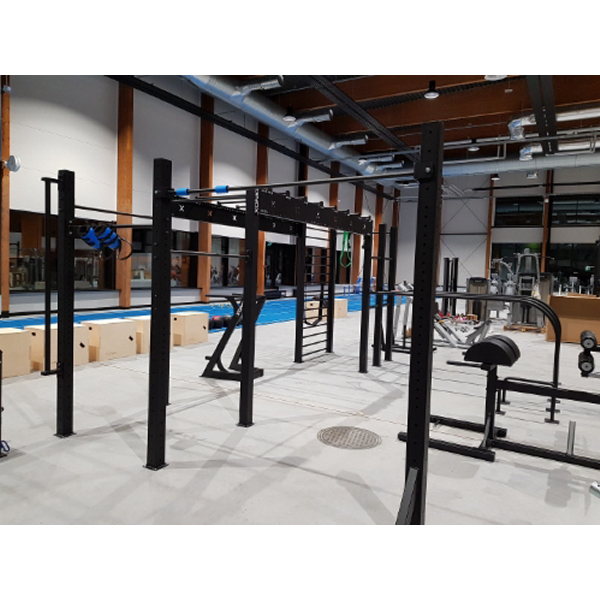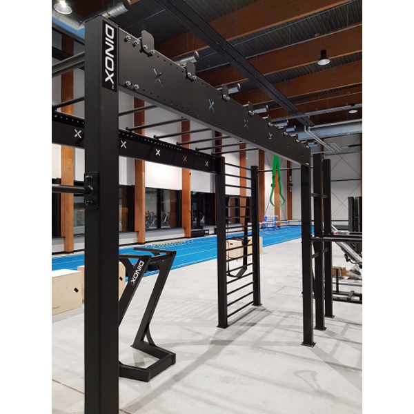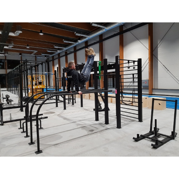 Monipuoliset ominaisuudet. Telineessä tuplanojapuut, monkeybar rata, neliökehikko, tankopaikkoja, puolapuut, rekkitanko.