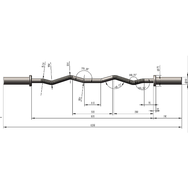 Mutkatangonpään halkaisija on standardimittainen ja käy kaikille 50 mm levypainoille. Erinomainen tanko hauis- ja ojentajatreeneihin.