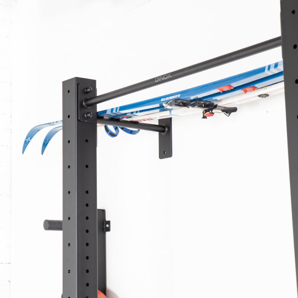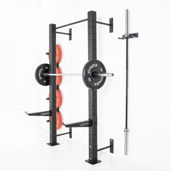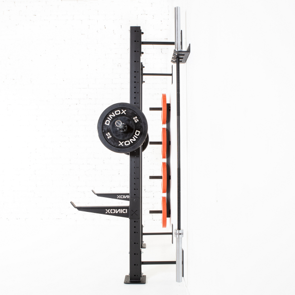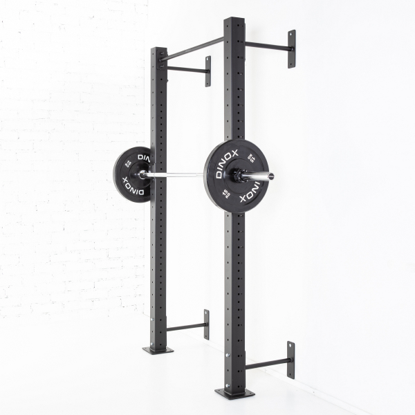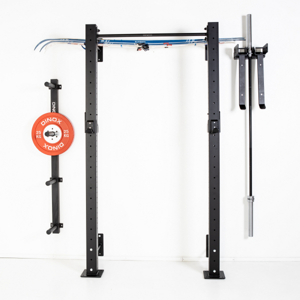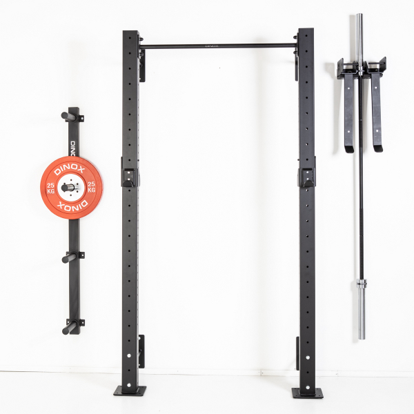 Treeniteline soveltuu erinomaisesti kyykkyharjoituksiin sekä myös leuanvetoon, voimistelurenkaiden ja TRX:n kiinnityksen jne. Teline on suunniteltu siten, että veisi mahdollisimman vähän tilaa ja voit käyttää telineen yläosaa myös esimerkiksi suksien, lasketteluvälineiden ym välineiden säilytyksessä. Teline kiinnitetään tukevasti neljästä tukiraudasta tilan seinärakenteeseen ja näin teline on tukeva painonnostossa. Treeniteline on omaa kotimaista Dinox tuotantoa.
