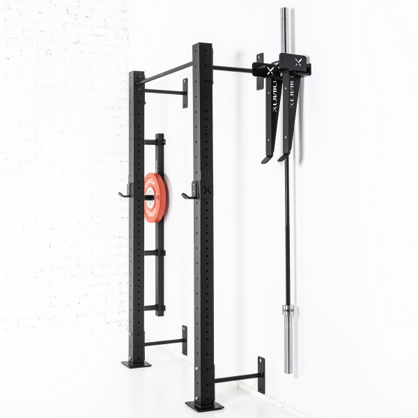 Jämäkkä seinälle asennettava painonnostotreeniteline Max levypainotangolle ja painolevyille. Lisäksi tämä setti sisältää turvaraudat, kolmipaikkaisen seinään kiinnitettävän tankotelineen ja seinäkiinnitteisen levypainotelineen, jossa 4 kpl 25 cm pitkiä levypainopidikkeitä 50 mm keskireiän levypainoille. Telineen kokonaispituus on 165 cm. Tankotelineessä pystyy säilyttämään vaihtoehtona kolmen tangon säilytykseen myös yhtä painonnostotankoa ja kahta turvarautaa. Turvaraudat varmistavat ettei raskas levypainotanko putoa rintakehällesi penkkipunnerruksessa viedessäsi painonnostosuorituksesi voimiesi äärirajoille. Näin ollen pystyt treenata myös itseksesi ilman vieressä seisovaa varmistajaa.
