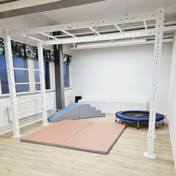 Erityisesti terapiatiloihin suunniteltu teline, johon on mahdollista kiinnittää erilaisia välineitä. Teline valmistetaan tehtaallamme Hollolassa, joten myös poikkeavat mitat tai värit ovat mahdollisia.