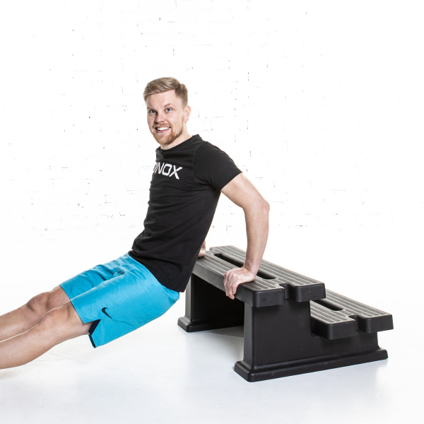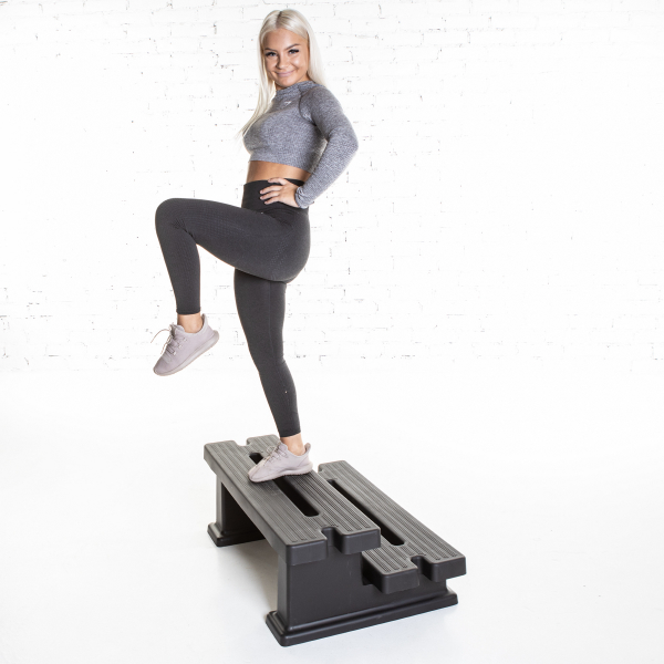 Treeniportaat ovat jykevä apuväline moniin erilaisiin lihaskuntoharjoituksiin. Voit tehdä niillä vaikka polvennostoja tai käyttää niitä tuomaan lisää vastusta punnerruksiin laittamalla jalkasi askelmien päälle. Treeniportaiden askelmissa kuvioitu pinta pitoa tuomassa. Valmistettu kestävästä ja jämäkästä polypropeenista.