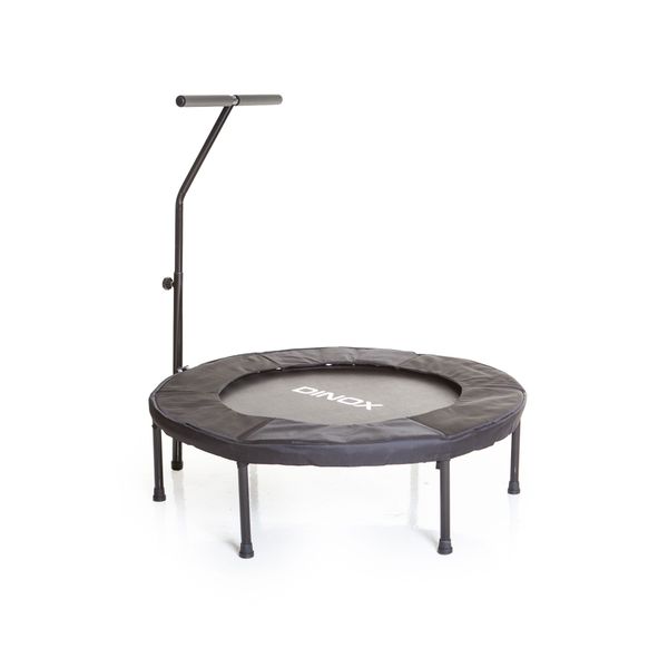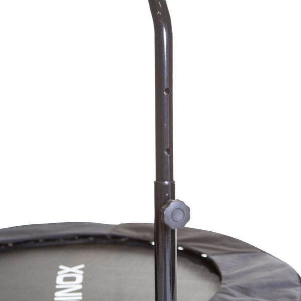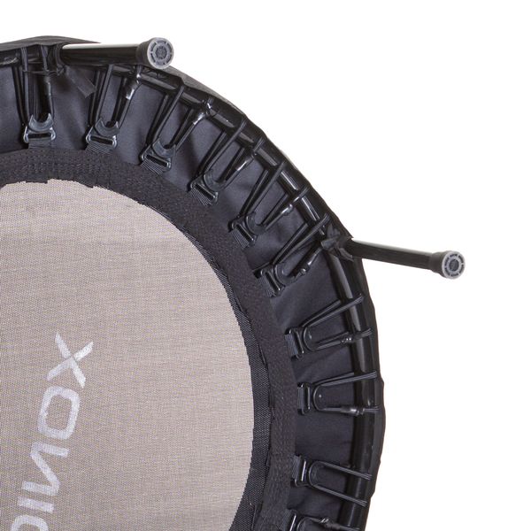 Korkeussäädettävä tukikahva lisää turvallisuutta ja mahdollistaa monipuolisemmat harjoitteet, joten trampoliini sopii erinomaisesti myös aloittelijoille tai kuntoutujille. Antistaattinen hyppymatto ja 30 elastista kiinnityssilmukkaa takaavat miellyttävän ja hiljaisen pomppualustan, kun taas kumitassulliset jalat pitävät trampoliinin tukevasti paikallaan. Irrotettavien jalkojen ansiosta trampoliini on myös helppo säilyttää ja siirtää.