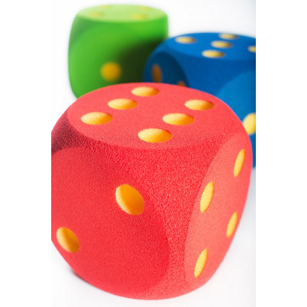 Värikäs ja pehmeä leikkinoppasetti, joilla on hauska leikkiä ja pelata tai vaikka opetella laskemaan. Yhden nopan koko: 16x16x16cm. Setissä on 3 eri väristä noppaa.