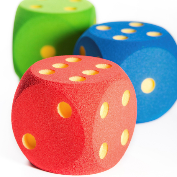 Nopilla on hauska leikkiä, pelata ja vaikka opetella laskemaan. Arpakuution pehmeyden ansiosta osumat eivät tunnu, joten heittely voi olla hauskan huoletonta.