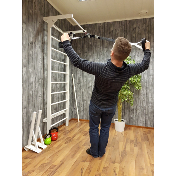 Harjoitushihna Pro on monipuolinen omaa kehonpainoa vastuksena käyttävä TRX:n ja voimistelurenkaiden kaltainen kuntoiluväline. Ihanteellinen apuväline myös fysioterapeuttiseen kuntoutukseen. Liikkeiden haastavuutta säädellään kehon asentoa ja kulmaa muuttamalla, joten Harjoitushihna Pro sopii sekä aloittelijalle ja edistyneemmälle treenaajalle. Harjoitushihna Pro on myös helppo kuljettaa mukana ja asentaa lähes mihin vain. Harjoitushihna Pron voi kiinnittää oviankkurilla oviaukkoon tai kattokoukkuun/kannattimeen. Liinan kannakkeessa lukitusmekanismi, jolla saat myös lukittua treenivälineesi. Näin ollen se soveltuu erinomaisesti myös klubikäyttöön. Myös hihnan numerointi helpottaa ohjaajan työtä. Kantopussissa harjoitushihnat kulkevat kätevästi pienessä tilassa, vaikka kuntosalille tai sään salliessa mukaan ulkoilmatreeniin, mukaan lomamatkalle jne. Harjoitushihna Pro on myös erinomainen lisävaruste puolapuihin. Tällaisen treenivälineen kanssa mielikuvitusta käyttämällä löytyy liikkeille loputtomasti eri variaatioita.