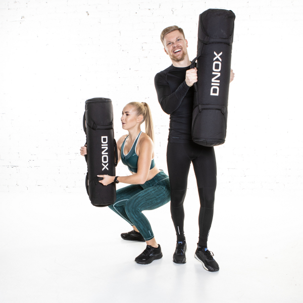 Harjoitussäkki Dinox Aqua Bag on vedellä täytettävä kuntoiluväline, jonka avulla voit tehdä monia tehokkaita toiminnallisia harjoituksia. Veden ansiosta säkki on epästabiili ja antaa todella kovan lisäintensiteetin harjoitteluun. Suurten lihasryhmien lisäksi epävakaa säkki pakottaa myös pienet lihakset töihin. Säkin paino on jopa 30 kg jos se on täytetty kokonaan vedellä. Säkin mukana toimitetaan ilmapumppu jolla säkin voi täyttää jämäkkään muotoonsa mikäli säkkiä täyttää vedellä vähemmän kuin maksimivetoisuuden.