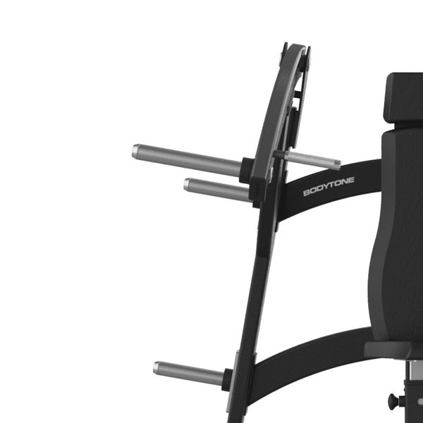 Levypainokuormitteinen Bodytone SR03E Hartiaprässi on erinomainen olkapäiden treenaamiseen, jossa maksimikuorma on jopa 240 kg (120 kg / puoli). Tällä laitteella treenaa olkapäitä sujuvasti, sillä painot on helposti määritettävissä oman kuntotason mukaan sekä penkin korkeutta voi säädellä itselleen sopivaksi.