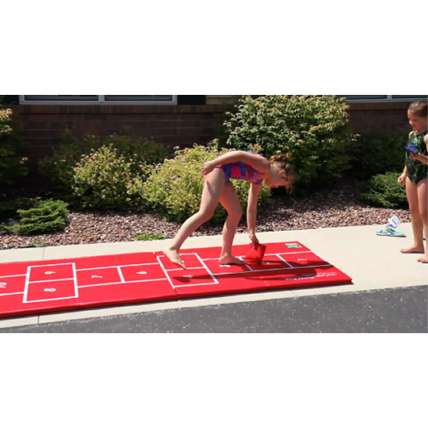 Toisella puolella on valkoinen puomikuvio, jonka avulla voit harjoitella erilaisia liikkeitä turvallisesti. Käännettäessä toiselta puolelta ilmestyy ruudukko, jolla myös rytmiharjoitteet ja hyppelyt onnistuvat.