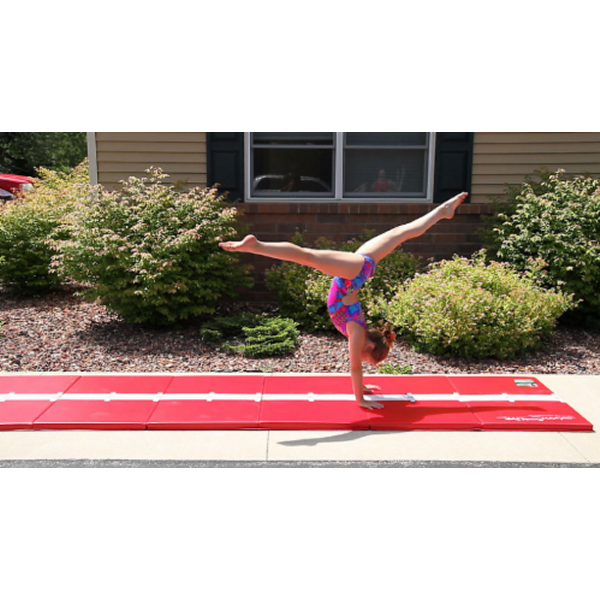 Kaksipuoleinen taitettava hyppy- ja temppumatto voimistelijoille ja temppuilijoille. Toisella puolella puomikuvio ja toisella ruudukko. Mitat: L 90cm, P 370cm, paksuus 3,5cm.