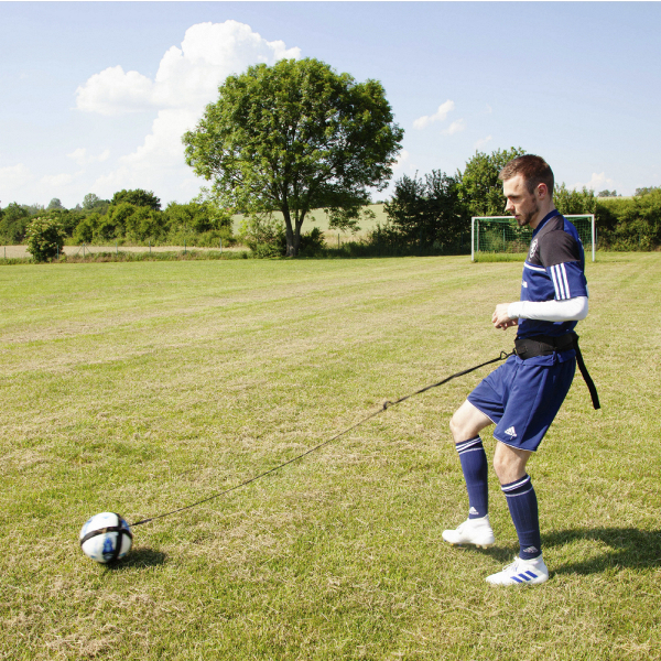 Jalkapalloharjoitin kiinnitetään toisesta päästä jalkapalloon ja toisesta päästä vyötärölle. Säätövara tarranauhallisessa vyötärökiinnityksessä on 80 - 105 cm. Pallon palautin tekee monista tasapaino- ja pallon hallinta harjoituksista mahdollista yksinkin. Kuminauhan säätöpituus 80 - 150 cm.