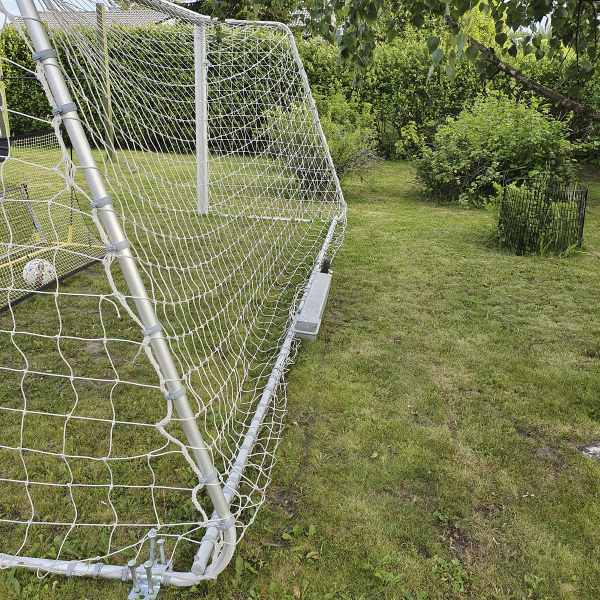 Useat kevyemmät jalkapallomaalit voivat kaaduta jos pelaaja jää roikkumaan ylärimaan. Painojen avulla maalit pysyvät turvallisesti paikoillaan. Yhden painon koko 40 kiloa. Pyörä ja kahva helpottamaan painon siirtelyä.