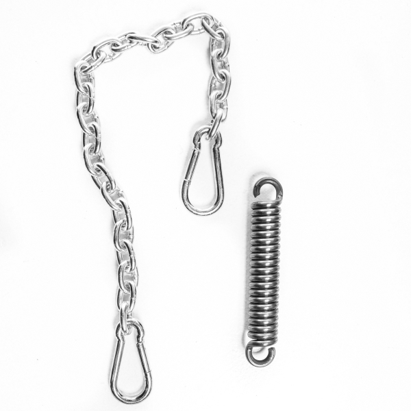 Nyrkkeilysäkin omat ketjut jättävät usein säkin liian ylös ja tarvitaan jatkoketju, jotta nyrkkeilysäkin saa optimaaliselle korkeudelle. Tämä jatkoketju on pituudeltaan 32,5 cm. Sen mukana tulee myös 2 x kiinnityshakaa ja jousi nyrkkeilysäkille.