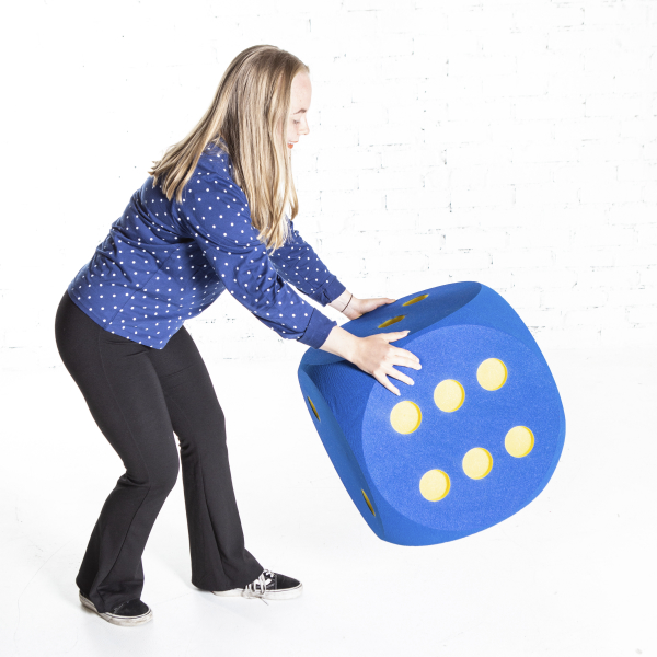 Värikäs ja pehmeä jätti noppa, jolla on hauska leikkiä, pelata ja vaikka opetella laskemaan. Soveltuu täydellisesti päiväkoteihin, esikouluihin, odotustiloihin jne. Koko: 50x50x50cm.