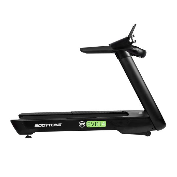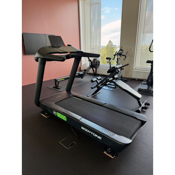 Bodytone EVOT4 juoksumatto sopii erityisesti hotelleille, taloyhtiökuntosaleille ja kylpylöille, jotka haluavat tarjota asiakkailleen ainutlaatuisen juoksukokemuksen. Toki malli on myös erinomainen valinta kotiin, kun haluat astetta laadukkaamman juoksumaton. Laitteessa on XXL kokoinen juoksumatto ja juoksuala onkin 55 x 145 cm. Maton leveys tarkoittaa, että voit keskittyä paremmin juoksemiseen ja kävelyyn, kun askellusta ei tarvitse koko ajan tarkkailla. Juoksumatossa on 15% asteen kaltevuuden säätö, joten voit käyttää juoksumattoa myös mäkiharjoitteluun. Sisäänrakennetun REACT®-tekniikan ansiosta, mallissa on tuplaiskunvaimennus, joka tekee juoksemisesta erittäin miellyttävää ja säästää myös niveliä. Juoksumaton maksiminopeuden 20 km/h ansiosta voit tehdä myös erittäin kovatehoisia juoksuharjoituksia. Moottorin teho on 4.0 HP. EVOT4 mallin maksimikäyttäjänpaino on 180 kiloa, joka tarkoittaa, että laite on erittäin tukeva käytössä ja kertoo myös laitteen laadusta. Tässä mallissa on myös tabletti /puhelinpidike, joten voit katsoa lempisarjaasi juostessasi. Juoksumaton näyttöpaneeli on erittäin helppokäyttöinen, joten pääset aloittamaan heti harjoittelun. EVOT4 juoksumatto on myös erittäin tyylikäs ulkonäöltään, joten se on helposti sijoitettavissa tilaan kuin tilaan. Matossa on edessä kuljetuspyörät siirtämistä varten.