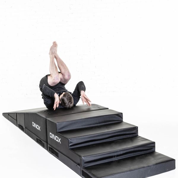Loivat kolmeaskeliset portaat tuovat taitavallekin käsilläkävelijälle lisähaastetta ja saat harjoitettua tasapainosi ja kehonhallintasi huipputasolle. Rampin pehmeän, mutta jämäkän vaahtomuovisisuksen ansiosta harjottelussa tapahtuvat kompuroinnit eivät tee kipeää ja moduuli on korkeimmalta kohdalta vain 41,5 cm, joten pudotukset eivät tapahdu korkealta. Epäonnistuneet käsilläkävelyharjoitukset on helppo jatkaa myös hallitusti kuperkeikalla pitkin pehmeää ramppia.