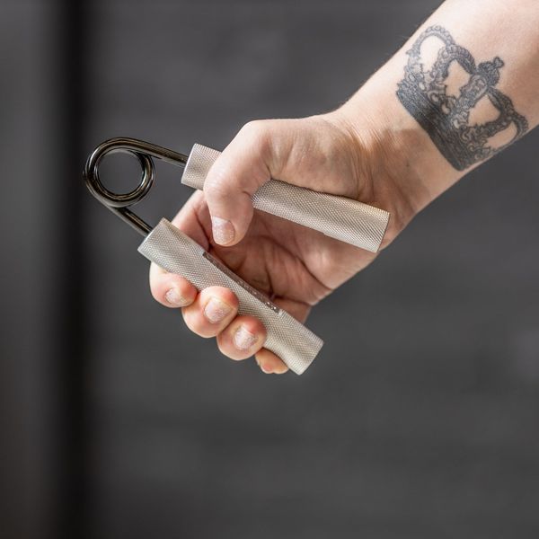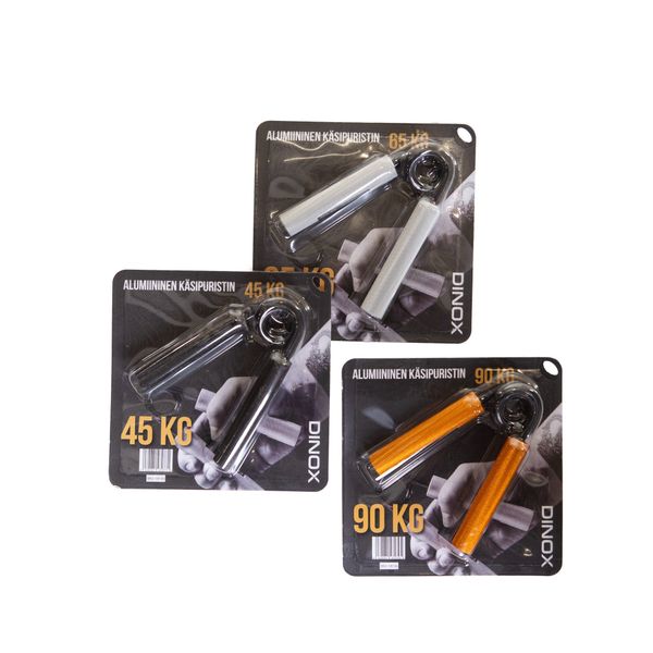 Erittäin kestävä alumiininen Käsipuristin vahvistaa sormia, käsiä ja kyynärvarsia. Helppo, tehokas ja yksinkertainen tapa parantaa otevoimaa. Kolme eri vastustasoa: 45kg, 68kg ja 90kg.