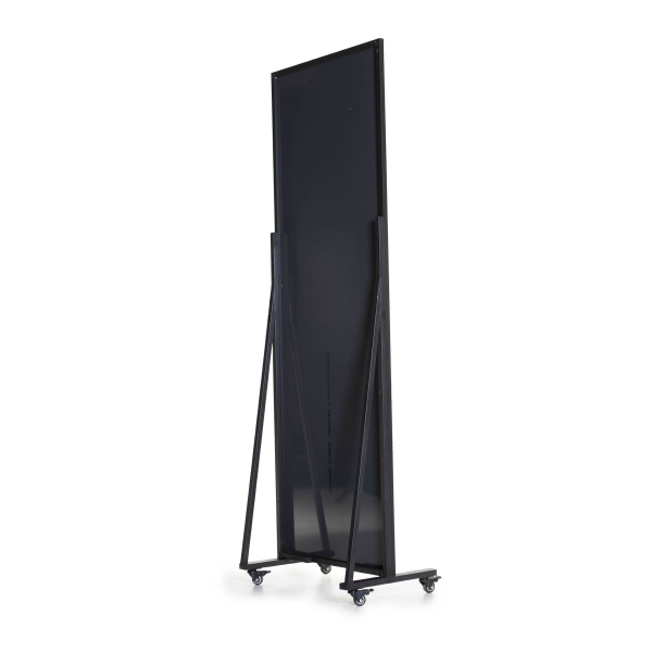 Lukittavilla pyörillä liikuteltava peili kuntosaleille tai fysioterapiaan. Mitat: K 188cm, L 60cm, S 4cm.