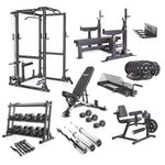 Paketissa tulee mukana jämäkkä ja kestävä monitoimi-voimateline (rack) ylä- ja alataljalla, penkkipunnerruspenkki heavy-avustajan tasolla, kuntosalitasoinen vinopenkki, 130 kg kumipäällysteisiä levypainoja, 8, 10, 12,5, 15, 17.5 ja 20 kg Hexagon Original -käsipainot, kuntosalikäyttöönkin soveltuvat (20 kg) Dinox-levytangot sekä pikalukot painojen kiinnittämiseen. Kotikuntosalin siistinä pitäminen on tehty helpoksi käsipainoille ja levypainoille tarkoitetuilla säilytystelineillä ja tangon saa nostettua seinälle seinätelineen ansiosta. Levypainokuormitteisella reiden- ojennus ja koukistuslaite sopii kevyempiin kuin raskaampiikin jalkatreeneihin ja mutkatangolla saa hauikset ja ojentajat kasvamaan. Vastuskuminauhasetti sopii loistavasti lämmittelyyn, lihashuoltoon ja kevyempään harjoitteluun.