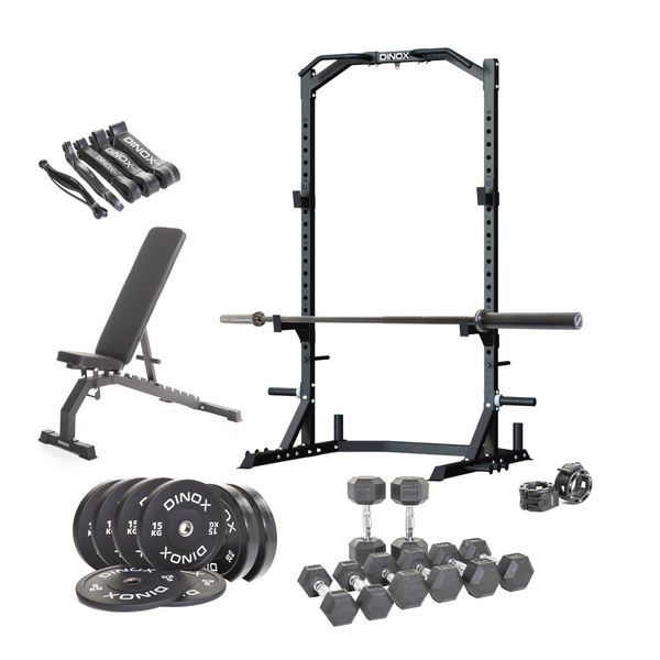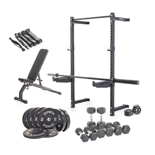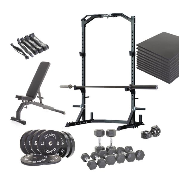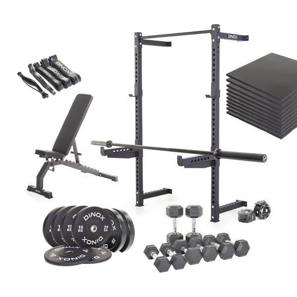 Täydellinen aloitussetti, jonka avulla jokainen voi luoda kotisalin 8-10 m² tilaan. Sisältää kaiken, mitä tarvitset voimaharjoittelun aloittamiseen tai yksittäisen kuntosalitreenin korvaamiseen kotioloissa. Setti on koottu Dinoxin laadukkasita välineistä ja se soveltuu niin aloittelijoille kuin jo hieman kokeneemmillekin treenaajille!