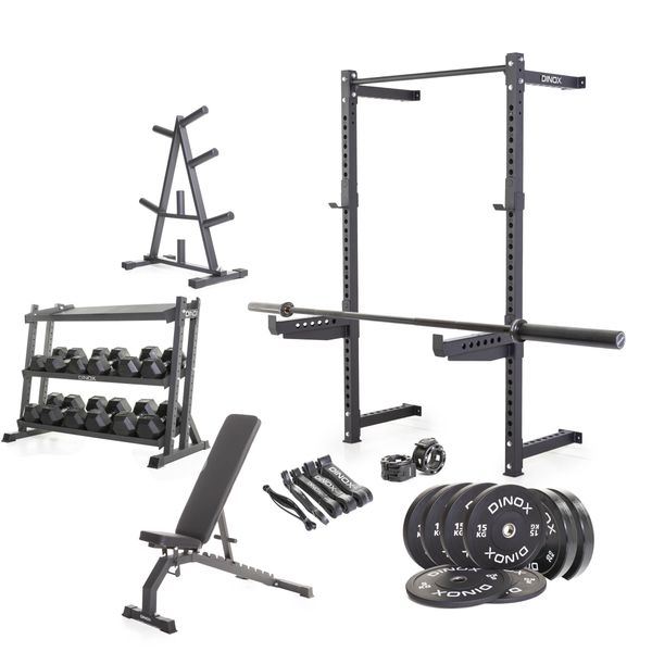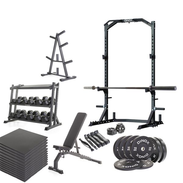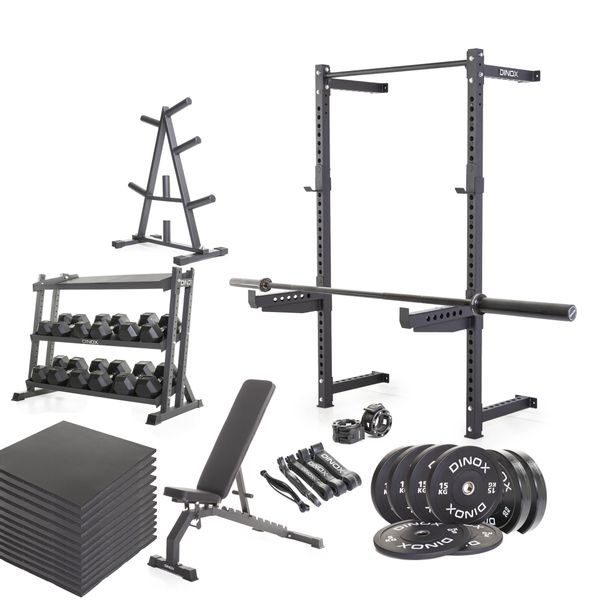 Täydellinen aloitussetti, jonka avulla jokainen voi luoda kotisalin 10-12 m² tilaan. Sisältää kaiken, mitä tarvitset voimaharjoittelun aloittamiseen tai yksittäisen kuntosalitreenin laadukkaan korvaamiseen kotioloissa. Setti on koottu Dinoxin laadukkasita välineistä ja se soveltuu niin aloittelijoille kuin jo hieman kokeneemmillekin treenaajille!