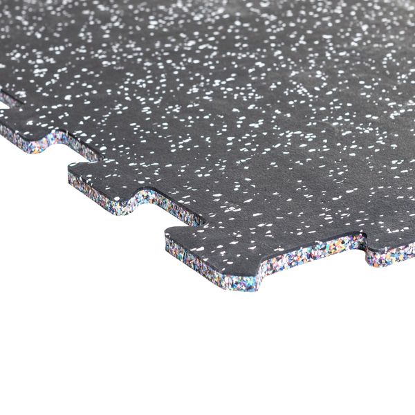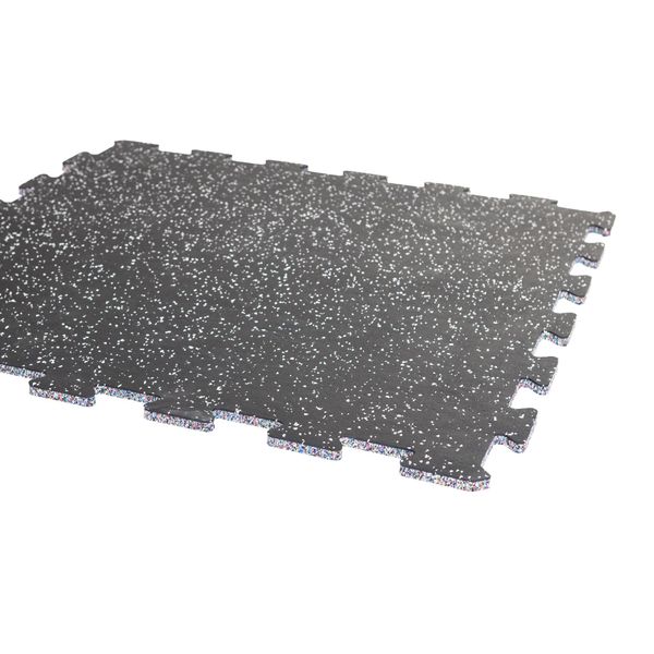 Kumipalamaton pinta on sileää EPDM erikoismuovia, joka mahdollistaa laattojen helpon siivoamisen. Valkoinen koristepilkutus myös häivyttää erittäin tehokkaasti sen ettei lika näy niin herkästi laatan pinnalla. Kumipalamattoa on helppo liittää saumattomasti toisiinsa palapelireunan ansiosta.