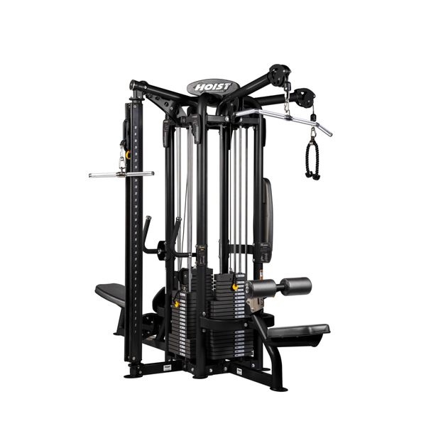 Hoist 4 Station CMJ-6000 on kuntosalikäyttöön suunniteltu monipuolinen voimaharjoitteluasema, joka yhdistää tilatehokkuuden, kestävyyden ja toiminallisuuden. Kestävä 713 kg painava teräsrunko, kuulalaakerit ja teräskaapelit takaavat laitteelle pitkän käyttöiän. Laitteen yhdessä tukevassa rungossa on yhteensä 4 erillistä harjoitusmahdollisuutta, minkä ansiosta useampi treenaaja voi hyödyntää laitetta samaan aikaan. Monitoimilaitteessa voi tehdä ylä- ja alataljaa, korkeussäädettävää pystytaljaa ja ojentataljaa. Korkeudensäätö onnistuu vaivattomasti yhdellä kädellä, joka lisää käyttömukavuutta. Joustavan laajennusmahdollisuuden ansiosta laitetta voi myöhemmin kasvattaa moduuleittain, jopa 9-14 aseman kokoiseksi.