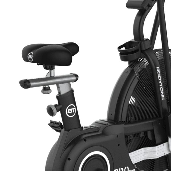 Bodytone ZRO PRO Airbike -kuntopyörän käyttö perustuu ilmanvastukseen - mitä enemmän käytät voimaa, sitä korkeampi vastus! Airbike mukautuu täysin käyttäjänsä mukaan ja omalla tahdillasi määräät sen, harjoitatko kestävyyttäsi vai räjähtävää nopeuttasi. Tämä kuntopyörä ei siis vaadi verkkovirtaa toimiakseen! Harjoitusvaihtoehdot ovat rajattomat. Harjoittelussasi apuna on viisituumainen LCD-näyttö, josta voit nähdä tietoja kuten aika, nopeus / keskinopeus, kalorit / keskimääräiset kalorit, matka, rpm, watit ja syke / keskisyke. Edessä on kuljetuspyörät, joten pyörän siirtäminen on helppoa.