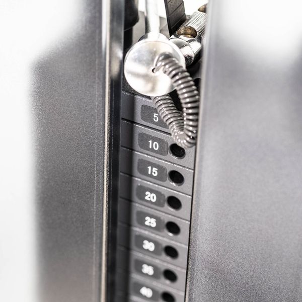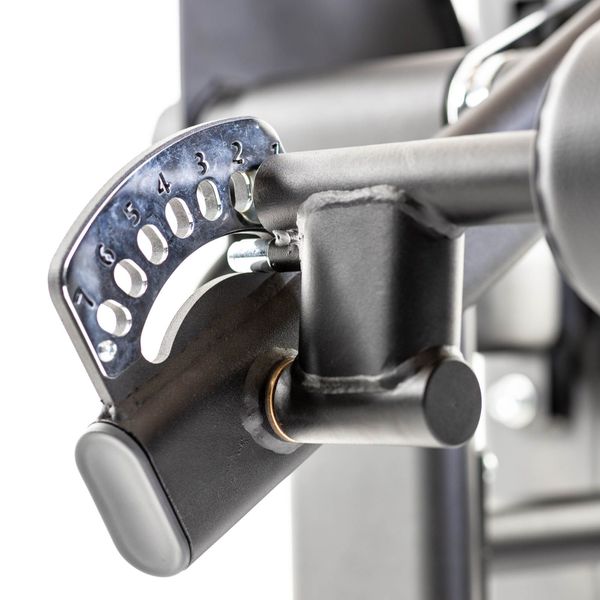 Dinox Reiden Koukistuslaite maaten Series Pro:n kaikki materiaalit on suunniteltu niin, että ne kestävät kovaa kuntosalikäyttöä. Laitteen ulkoiset mitat on suunniteltu niin, että laite vie mahdollisimman vähän tilaa saliltasi mahdollistaen erinomaisesti myös muiden laitteiden sijoittelun. Saat tämän ansiosta mahtumaan tilaasi huomattavasti enemmän laitteita. Laitteen painopakka on suojattu kestävällä ja tyylikkäällä pleksillä jossa aukko on 70 milliä määräysten mukaan. Suoja varmistaakin laitteen turvallisen käytön. Painopakkavalitsin on varustettu magneetilla ja pysyy siksi hyvin paikallaan. Laitteessa on hyvät säätömahdollisuudet joten eri mittaiset henkilöt löytävät juuri oikeat säädöt itselleen.