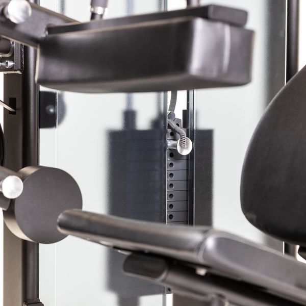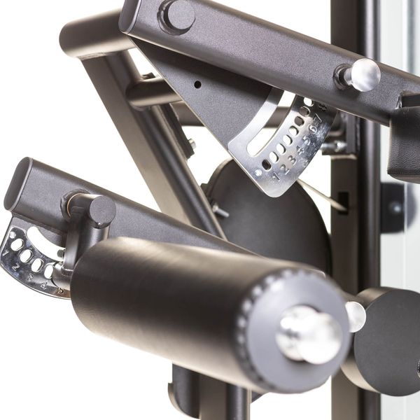 Dinox Reiden Koukistuslaite Series Pro:n kaikki materiaalit on suunniteltu niin, että ne kestävät kovaa kuntosalikäyttöä. Laitteen ulkoiset mitat on suunniteltu niin, että laite vie mahdollisimman vähän tilaa saliltasi mahdollistaen erinomaisesti myös muiden laitteiden sijoittelun. Saat tämän ansiosta mahtumaan tilaasi huomattavasti enemmän laitteita. Laitteen painopakka on suojattu kestävällä ja tyylikkäällä pleksillä jossa aukko on 70 milliä määräysten mukaan. Suoja varmistaakin laitteen turvallisen käytön. Painopakkavalitsin on varustettu magneetilla ja pysyy siksi hyvin paikallaan. Laitteessa on erinomaiset säädöt, jonka ansiosta eri kokoiset käyttäjät löytävät juuri itselleen sopivat säädöt harjoitusta varten.