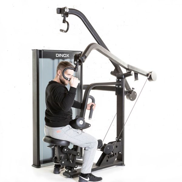 Dinox Ylävetolaite on varustettu kaasujousiavusteisella istuinsäädöllä, sekä säädettävällä rintatuella pikalukituksen kera. Kahvojen tartuntaotepinta on kuminen, joten ote pitää hyvin. Lisäksi otekahvat ovat nivelöidysti kiinni liikevarsissa, joka mahdollistaa saumattomasti moniotteisen ja näin ollen juuri sellaisen liikeradan harjoitteeseen kuin haluat. Erilliset liikevarret mahdollistavat harjoittelun yhdellä tai kahdella kädellä tai vuorotahtiin. Yhden käden harjoitteessa laitteesta löytyy tähän käyttötarkoitukseen suunniteltu lisätukikahva, jonka ansiosta saat harjoitteesta maksimaalisen hyödyn. Dinox Ylävetolaitteen liikevarsilla saadaan erittäin syvän venytyksen ja liikerata on sujuva venytyksestä liikkeen supistusvaiheeseen asti. Tämä kaikki on hyvän laitesuunnittelumme lopputulosta.