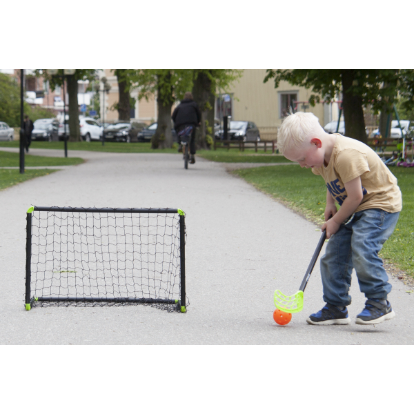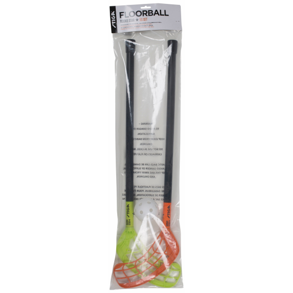 Lasten peleihin Stiga Rookie salibandysetti johon kuuluu kaksi sählymailaa ja yksi pallo