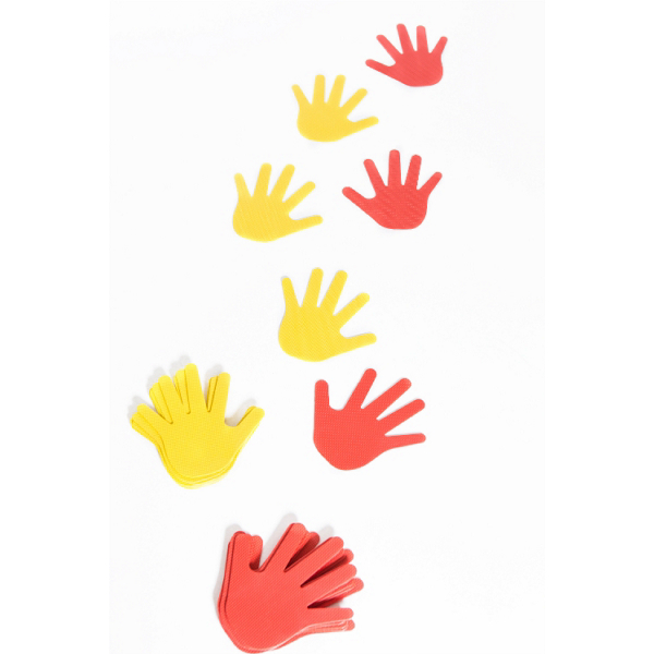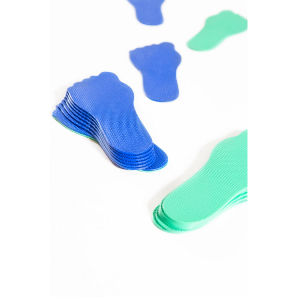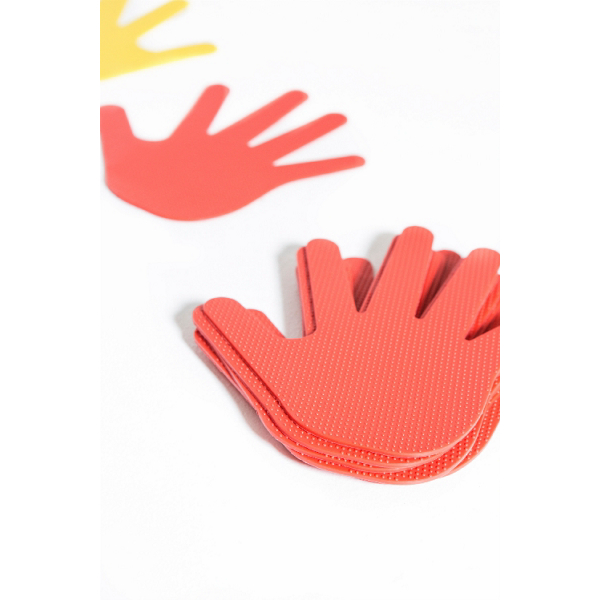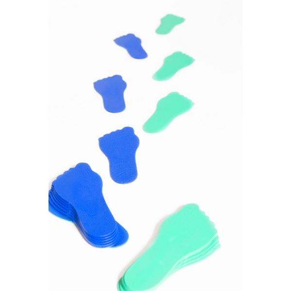 Setissä 5 paria käsiä ja 5 paria jalkoja, kaikkiaan 20 lattiamerkkiä.