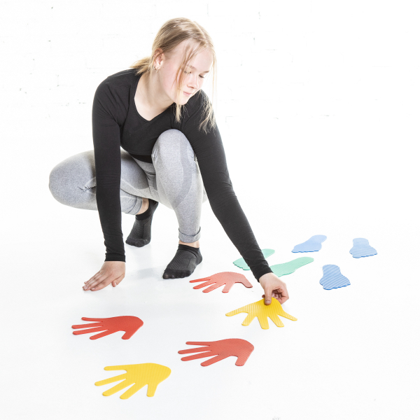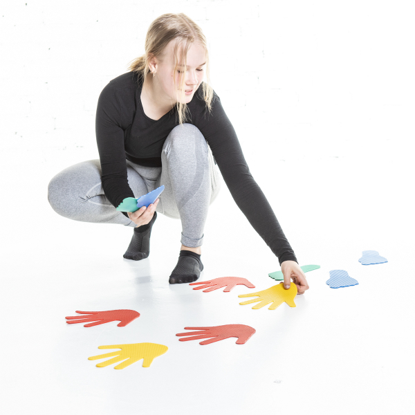 Aisteja, käsiä ja jalkoja aktivoivat sensoriset käden ja jalan malliset lattiamerkit. Setissä on 5 paria käsiä ja 5 paria jalkoja. Pysyvät hyvin paikallaan niille astuessa.