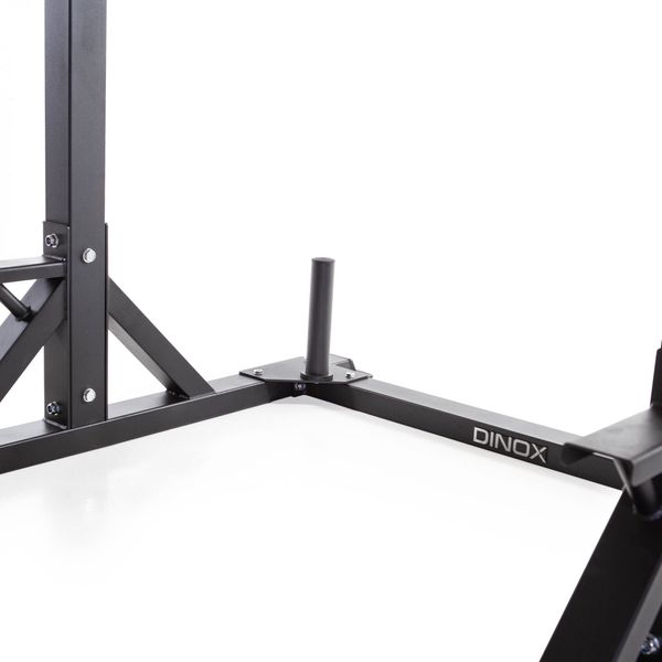 Leuanvetotelineen jalusta on mahdollista kiinnittää lattiaan, tai voit käyttää rekin kulmissa olevia levypainopidikkeitä, joihin voi lisätä levypainoja (keskireikä Ø 50 mm) lisävakauden tuomiseksi. Teline on kuitenkin jo itsessään äärimmäisen tukeva, joten kiinnitys tai lisäpainojen käyttö ei ole välttämätöntä.