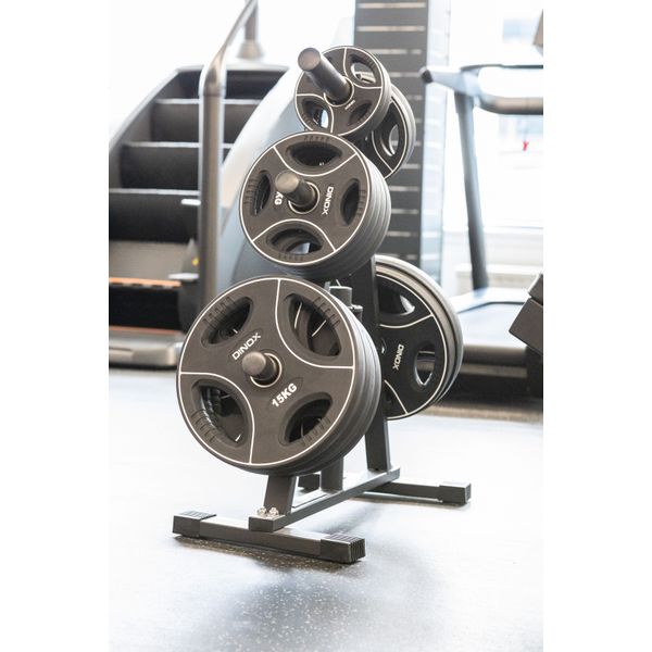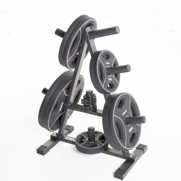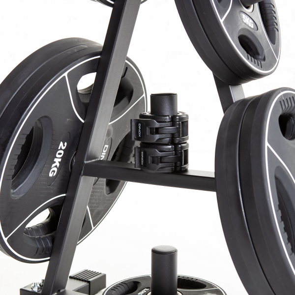 Pystymallinen levypainoteline, jossa on kuusi paikkaa 50mm reiän levypainoille sekä paikka lukoille. Kompaktin kokoinen: S 38cm, L 60cm ja K 95cm. Paino 9kg. Max kantavuus 300kg.