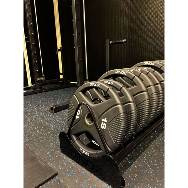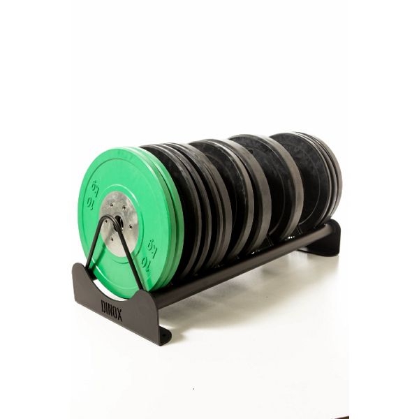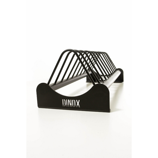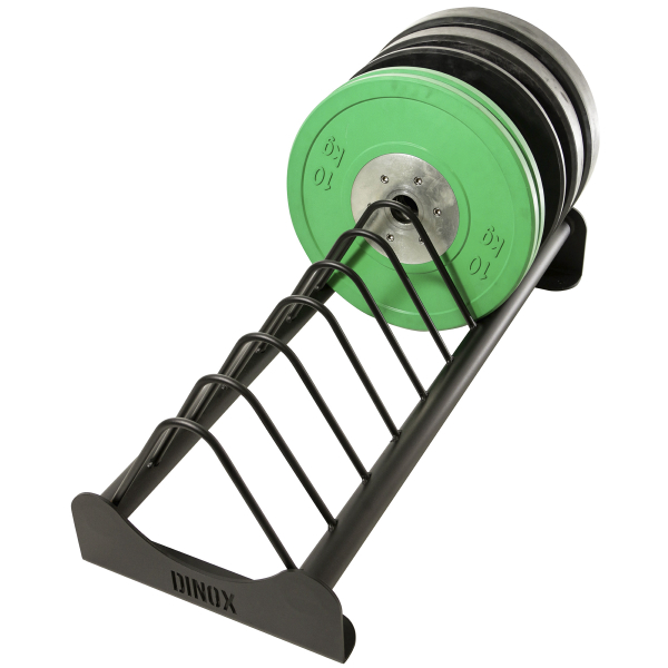 Dinox levypainoteline on metallinen kestävä teline levypainoille. Siinä on 10 väliä levypainoille 10 cm välein. Suunniteltu erityisesti 45 cm halkaisijan painoille, kuten esimerkiksi Bumper painoille.