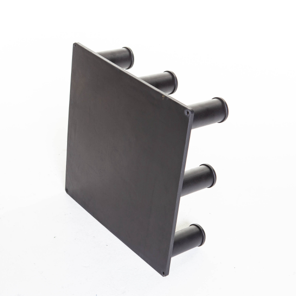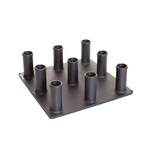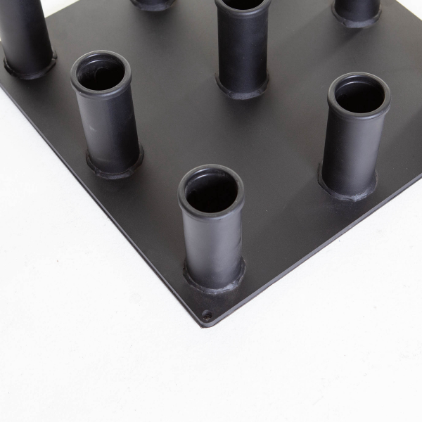 Lattialla tukevasti pysyvä kumipohjainen metalliteline, jonka voi tarvittaessa myös pultata lattiaan. Mitat: 50x50cm ja K 15cm. Paino 22kg.
