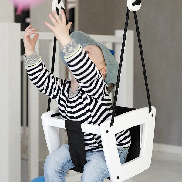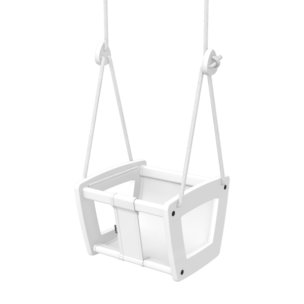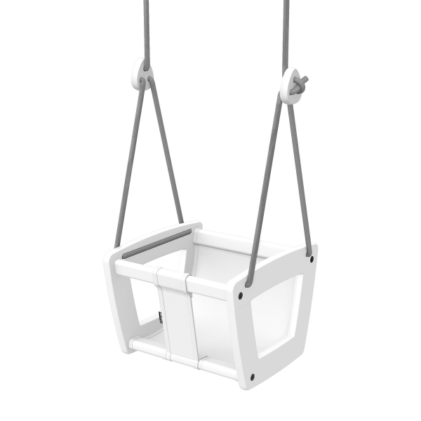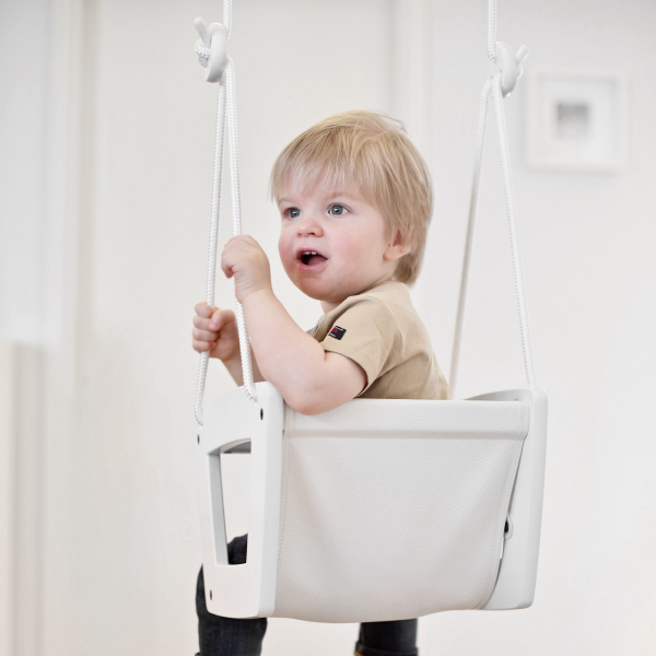 Lillagunga Toddler Keinu, valkoinen koivu on kaunis, huolella suunniteltu ja turvallinen keinu perheen nuorimmille lapsille. Käsintehty nahkainen istuin tai kankainen päällinen ja mustat köydet tekevät keinusta tyylikkään sisustuselementin jokaiseen kotiin. Keinun korkeus on helposti säädettävissä patentoitujen köysilukkojen ansiosta.