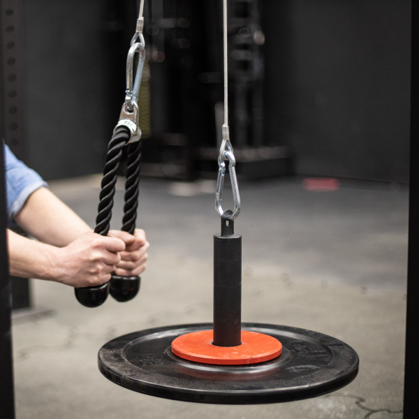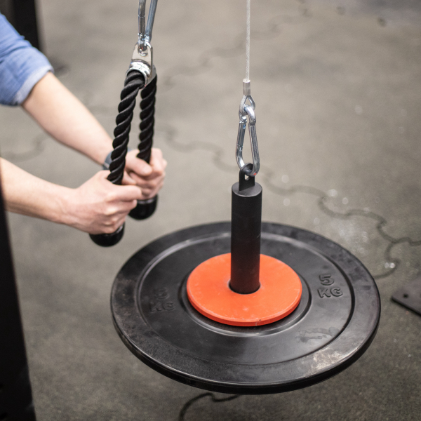 Voit liittää esimerkiksi Loading Pinin levypainoilla vaijeriin ja ojentajaköyteen, jolloin saat aikaiseksi yksinkertaisen painopakkalaitteen. Vetorautoja vaihtamalla, sekä levypainoja lisäämällä treenin monipuolisuus on rajaton.