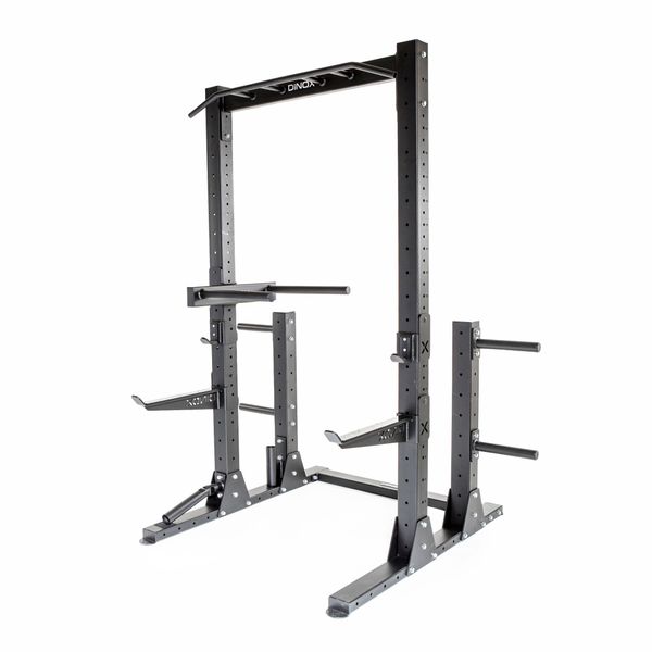 Erittäin jämäkkä ja monipuolinen voimateline painonnostotreeniin kotiin tai kuntosalille sisältäen myös dippitelineen. Valmistetaan tilauksesta tehtaallamme. Mitat: P 151cm, L 125cm (+levypainotelineet) ja K 225cm. Max kantavuus 450kg.
