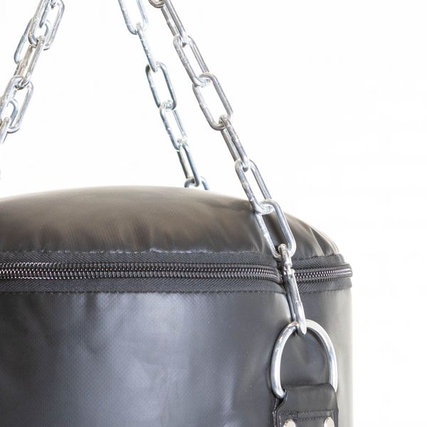 Tämä nyrkkeilysäkki on täydellinen lisä kotikuntoilutilaasi tai kuntosalille. Nyrkkeilysäkissä on neljä vahvaa ripustusketjua. Ripustusketjut on kiinnitetty ripustushakasilla nyrkkeilysäkin vahvikepaloihin ommeltuihin ripustusrenkaisiin, mikä lisää säkin vakautta ja kestävyyttä. Ketjuissa on myös pyörivä sakkeli joka auttaa ettei ketjut kulu niin nopeasti käytössä. Nyrkkeilysäkin päälipinta on vahvaa PVC kangasta. Säkin sisus on tekstiilisilppua ja reunustettu solumuovilla.