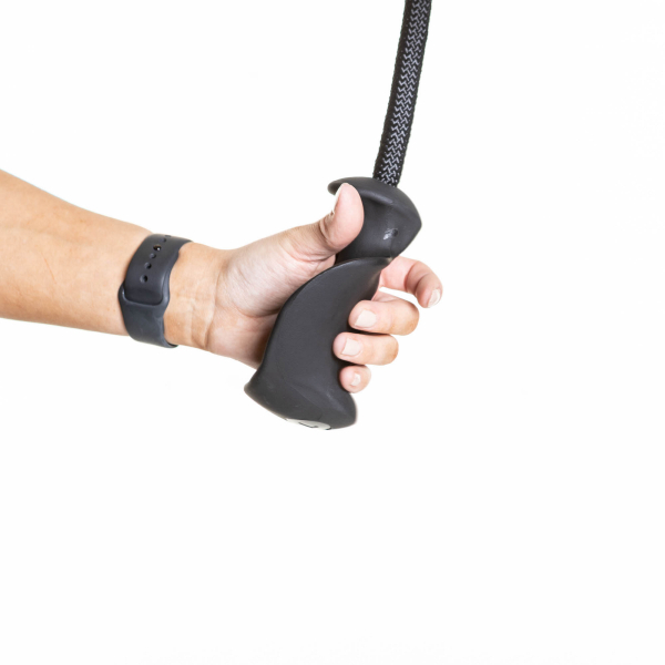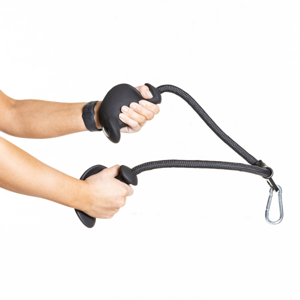 Tämä ojentajaköysi ergonomisilla käsikahvoilla oleva ojentajaköysi, jossa kädensijojen muotoilu on suunniteltu oikeaan- ja vasempaan käteen erikseen. Kädensijat on merkitty R = oikea ja L = vasen. Ojentajaköyden avulla saat treenattua ojentajia ranneystävällisellä neutraalilla otteella.