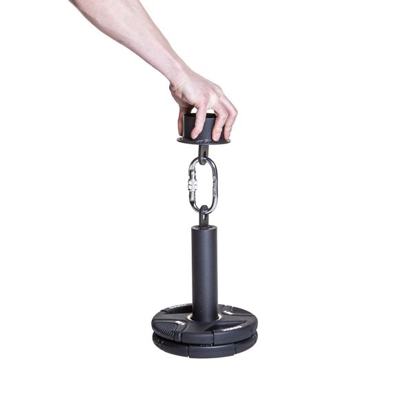 Ennen harjoittelua levitä magnesiumia käsiin ja blokin pintaan parhaan pidon varmistamiseksi. Kiinnitä blokki karabiinilla Loading Pin -levypainotappiin ja lisää haluamasi määrä painoa. Aloita kevyemmillä kuormilla ja lisää vastusta asteittain, kun tekniikka ja ote vahvistuvat. Tartu blokkiin ja nosta hallitusti – harjoittelun voi suunnata joko maksimaalisen voiman kehittämiseen tai pitovoiman parantamiseen riippuen treenitavoitteista.