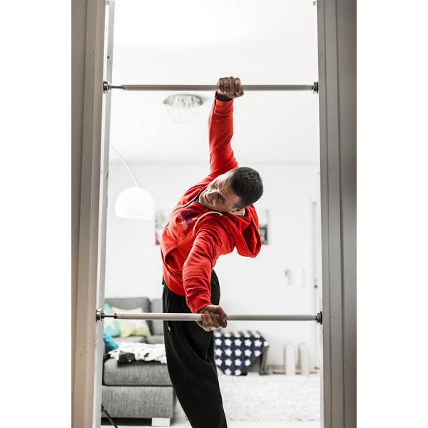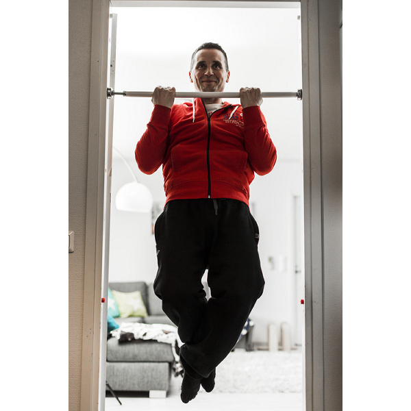 Voit kiinnittää rekkiin myös esimerkiksi jumppakuminauhat, voimistelurenkaat tai TRX:n. Tässä tangossa on myös erittäin sopiva otepaksuus (25 mm) koko perheen käyttöön. Mattavalkoinen pinta on myös pitävä kädelle.