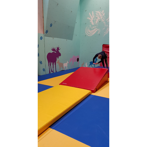 Parkourkolmion voi laittaa seinää vasten tai lattialle. Seinävoltit, lattiavoltit, kuperkeikat, mitkä vain temput onnistuvat tällä kiilalla.