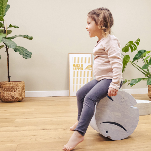 Kalan pyöreä muoto mahdollistaa jatkuvan liikkeen, olipa se sitten Kalan pyörittelyä tai jahtaamista tai vain istumista Kalan pyöreän puolen päällä kehittäen tasapainoaistia ja vahvistaen niveliä. Makaaminen Kalan pyöreän puolen päällä vahvistaa lapsen niska- ja selkälihaksia. Etkö yletä pöydälle tai käsienpesulle? Kala on täydellinen pikku jakkara, jonka avulla lapsi ylettää itse, eikä vanhempien välttämättä tarvitse auttaa. Kalasta saa myös sopivan jakkaran lasten oman pöydän ääreen.